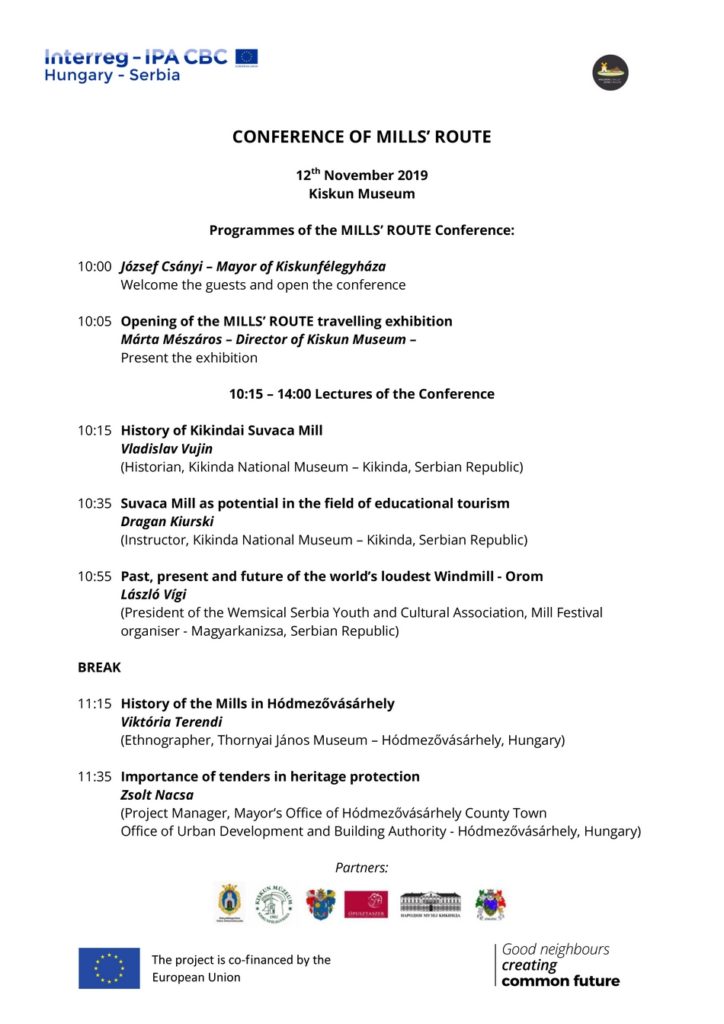 A rendezvény a HUSRB/1602/31/0252 referenciaszámú „MILLS’ ROUTE” című IPA projekt támogatásával került megrendezésre.