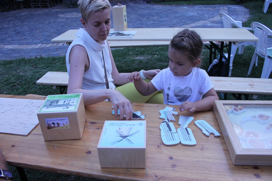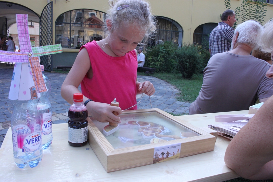 A kézműves pavilonokban az Izgő-Mozgó Kölyökklub várta az ügyeskedőket. – szalmagyöngy fűzés – szélforgó készítés – malom makett készítés – szalmafonás